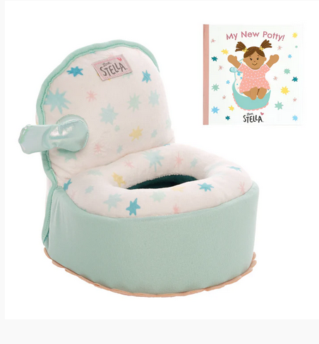 Real flushing sounds with every squeeze of the potty handle! Turn potty-training into playtime activity with this doll-size potty and mini book set.