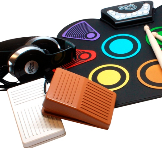 Rock out, then roll it up. The Rock And Roll It - Spectrum Drum is a colorful, flexible, completely portable drum by MukikiM with two drumsticks, two pedals, headphones and a play-by-color music book. This all-in-1 kit includes everything you need to learn and start playing the drums.