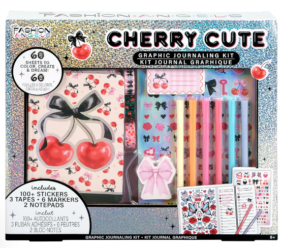 CREATIVE JOURNALING FUN FOR GIRLS: The Fashion Angels Cherry Cute Graphic Journaling Set is packed with everything kids need to express themselves through writing, doodling, and decorating. Perfect for girls who love journaling, creative writing, or simply adding flair to their notes and diaries.
