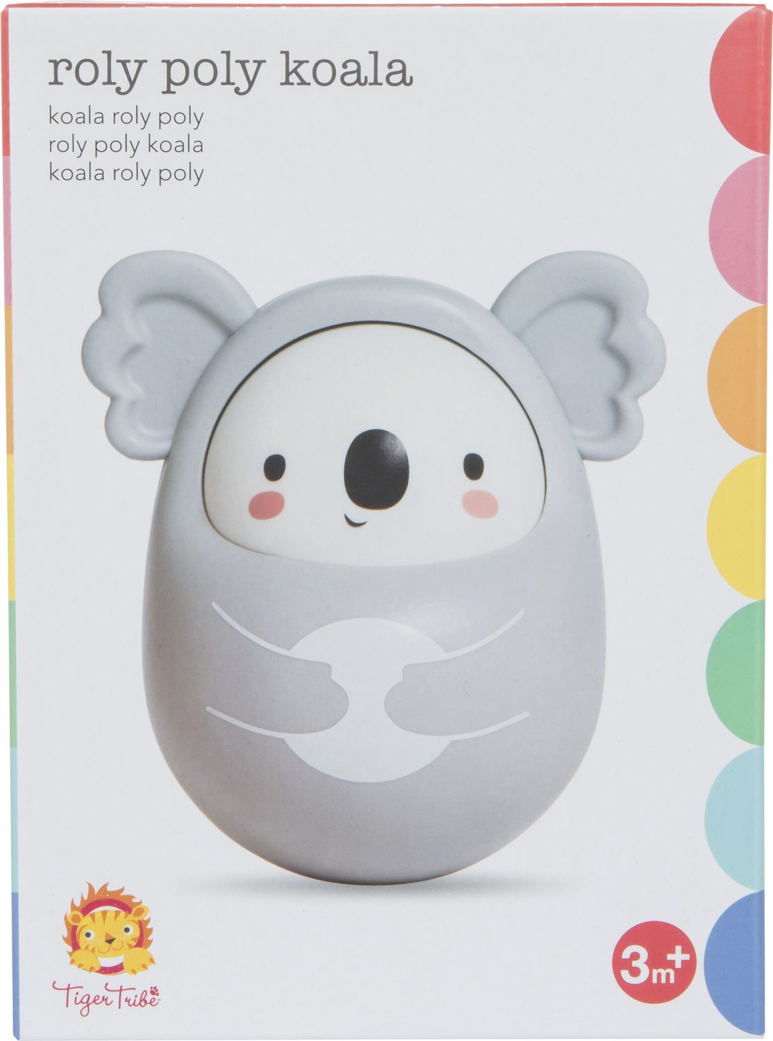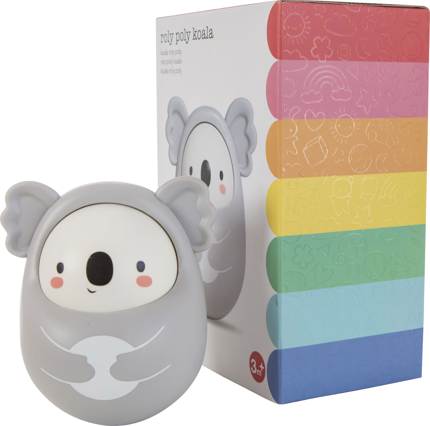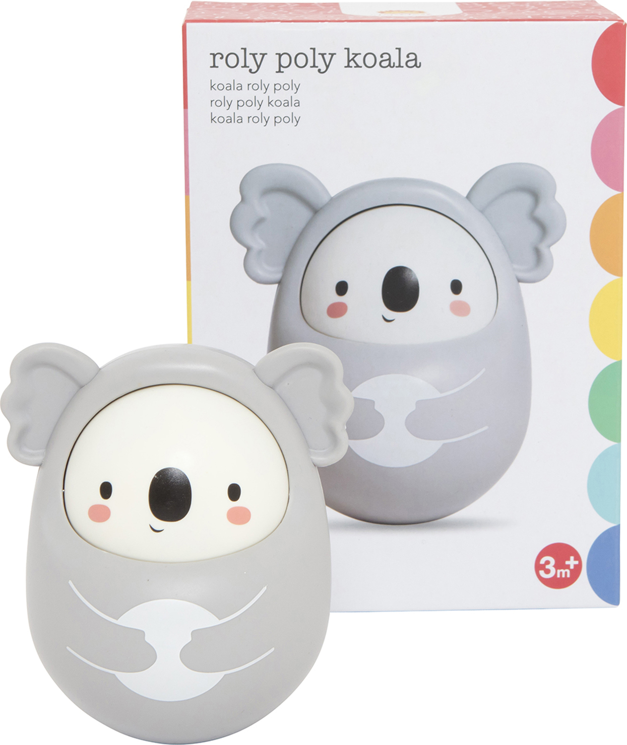 Roly Poly Koala loves being pushed, pulled or knocked over – always bobbing up for more fun. Koala's rounded, weighted bottom will always spin him back upright for more play. And as he rolls around he makes a lovely tinkling bell sound, for additional sensory stimulation.