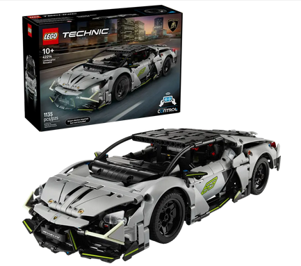 Inspire kids to build a detailed model version of the stunning Lamborghini Revuelto Super Sports Car with this LEGO® Technic™ STEM building toy (42214) for boys and girls aged 10 and up. With features inspired by the real-life car, this model includes an engine cover and cool glow-in-the-dark headlight details. Meanwhile, the sleek design is sure to impress any Lamborghini super fan. But the build is just the start with this fast-action set. Access the CONTROL+ app to steer the car, control the lights and see live data feedback from the app’s cockpit screen as kids perfect their driving skills.